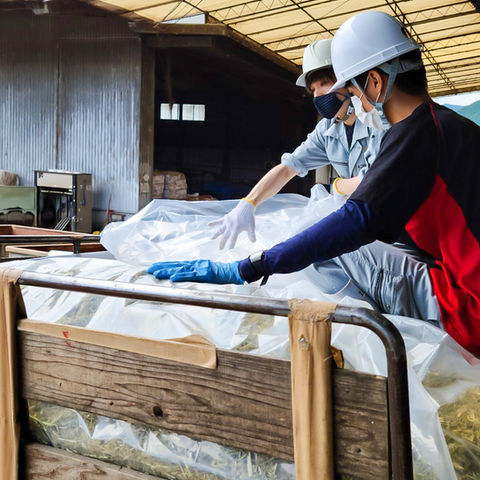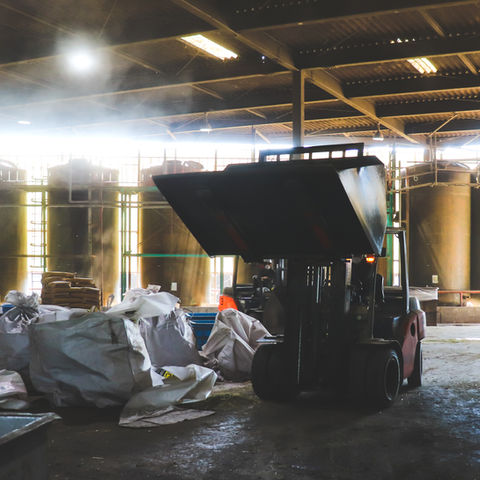 TMRと呼ばれる配合飼料の製造です。フォークリフトを使って原料をミキサーに投入する作業、ミキサーを操作して飼料を製造する作業、コンテナに詰めた飼料の空気を抜く作業、詰め終わったコンテナ缶やフレコンバッグをフォークリフトで運搬する作業等をお任せします。